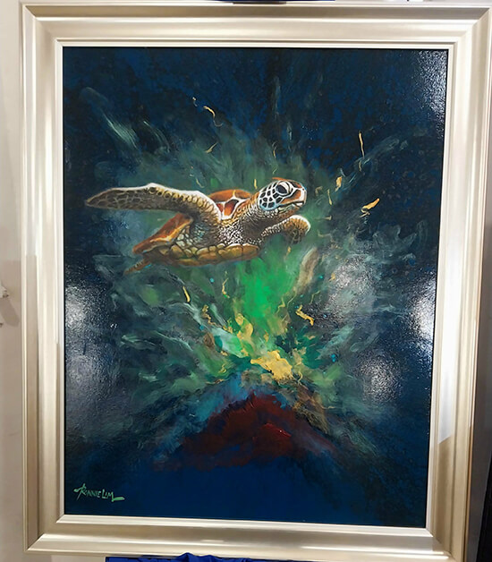 With 30 years of professional experience, self-taught artist Addie Cukingnan has evolved into a master of oriental landscapes, flora and fauna, still lifes and figures akin to Chinese painting. Yet, instead of using the classic traditional Chinese style of brush-and-ink on silk or paper, Addie uses mostly oil and acrylic, employing western techniques like chiaroscuro. This is evident in her masterful paintings of huge porcelain or ceramic jars, distinguished by the superb sheen of reflected light rendering them almost three-dimensional on the canvas, made even more exquisite with details of dragons, birds, and flowers.