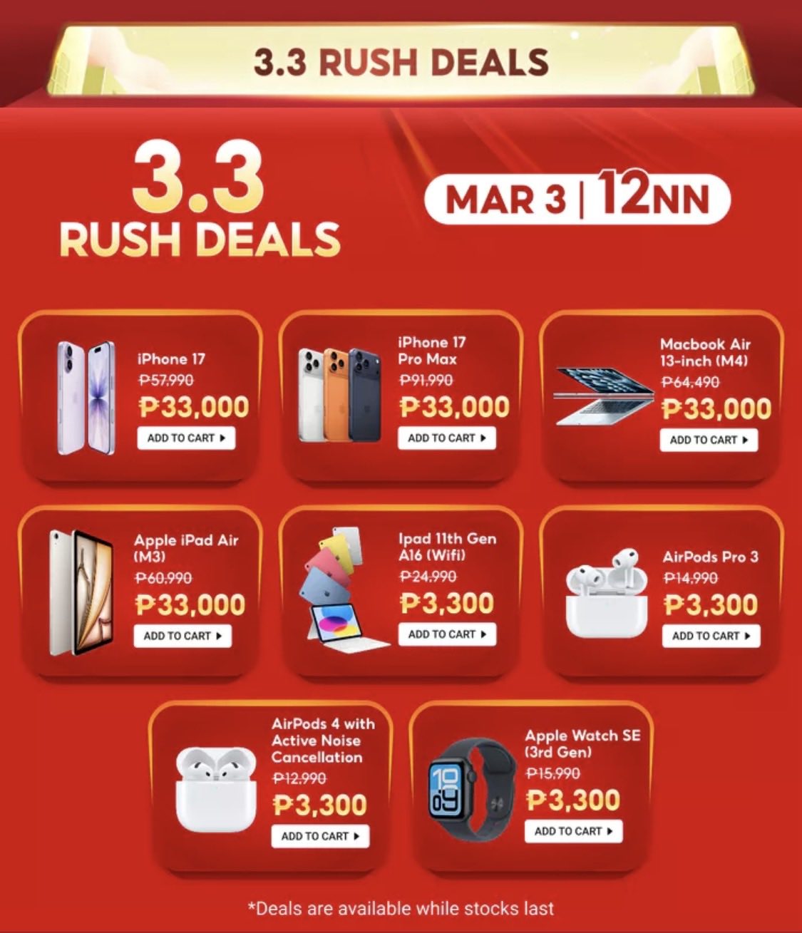 The 3.3 Rush Deals are available on Shopee's "Siguradong Mura" page. Check them out here.