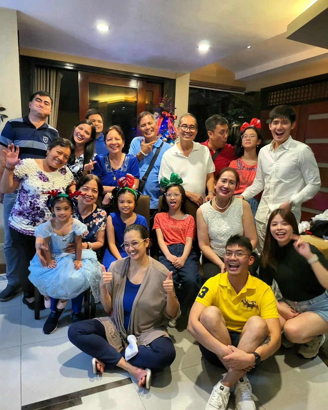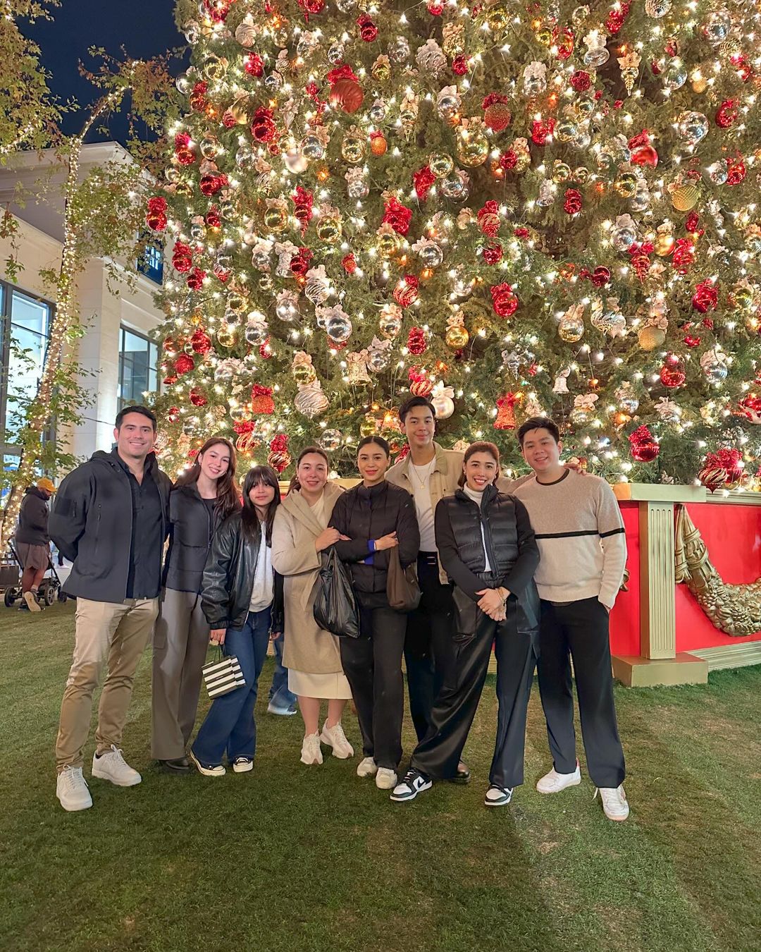 Marjorie, along with Julia and her boyfriend Gerald Anderson, Leon, Claudia, Erich, Dani and her husband Xavi Panlilio with their daughter Millie, posed in front of a giant Christmas tree as a family.