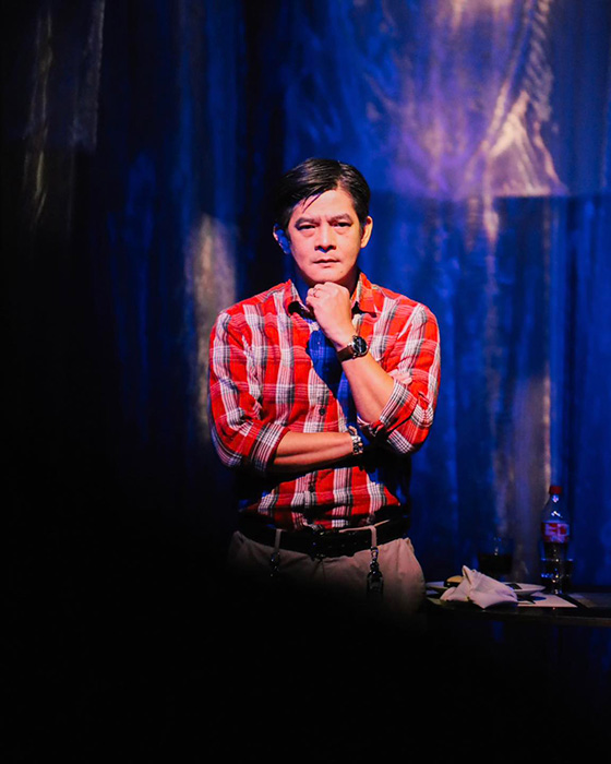 Indeed, despite never actually being seen in the film, Marcus (who’s left Eric’s life when the story opens) plays an integral role in Eric and Lance’s revelatory spiral. Here, he is the play’s third character, popping up in often-conflicting recollections as revelations unfold. Bringing the hitherto unseen Marcus to life is the inimitable Epy Quizon, who gives the role an indelible, primal quality that permeates the proceedings, even when he’s not on stage.