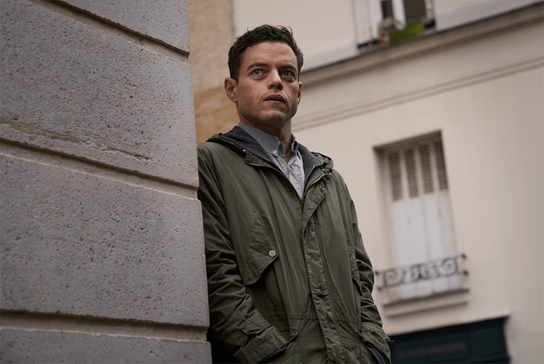 Malek plays vengeance-seeking CIA decoder Charlier Heller, slowly walking away from an explosion about to happen, somewhat like every “hero walks away from fireball” trailer we’ve seen in action movie history—until it finally does go off, and he cringes from the boom-boom and darts out of frame.