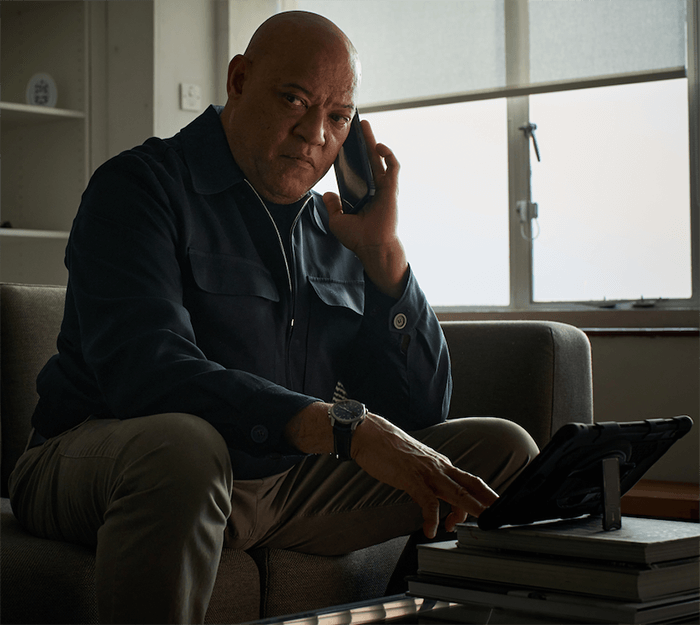 Henderson, like many mentors Fishburne has played (see: Morpheus in The Matrix), exudes a calm, deeper knowledge of the world: he warns Charlie about the price of vengeance.