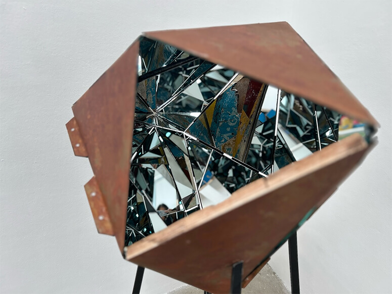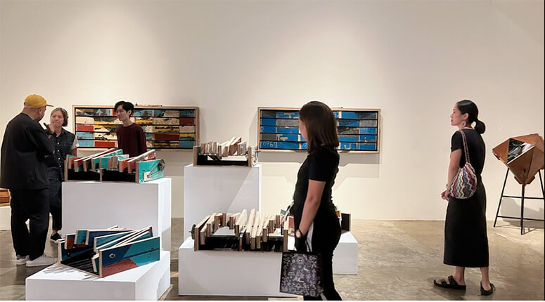 The exhibit’s found-art quality comes from this, following on his earlier “Inalon” show, emerging from an Anakbanwa Art Residency in Dagupan. An architecture major, Ortiga says he doesn’t really “choose” the materials that end up driving his pieces: “Baroto” arose through an “opportunity,” a chance a visit to a place where humans have been battling the elements since first taking to water on buoyant slabs of wood. In Ortiga’s exhibit, those boats beat on against the current, borne back ceaselessly into the past, but also moving forward.