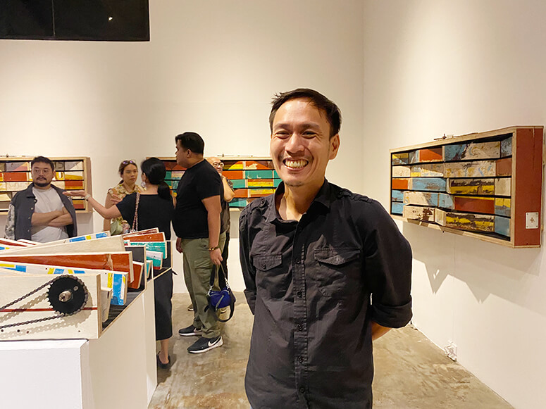 The idea of seemingly random motion has often guided Ortiga’s work, like the weight-driven Spirograph-like machines he installed at Artablado last year in the group exhibit “The Sound of Abstract.” Somatosonic, his sound-experiment band with director Tad Ermitaño as co-member, played at the Artablado launch, and will also gig here, joining with the soft churning of the wooden slats in the background.