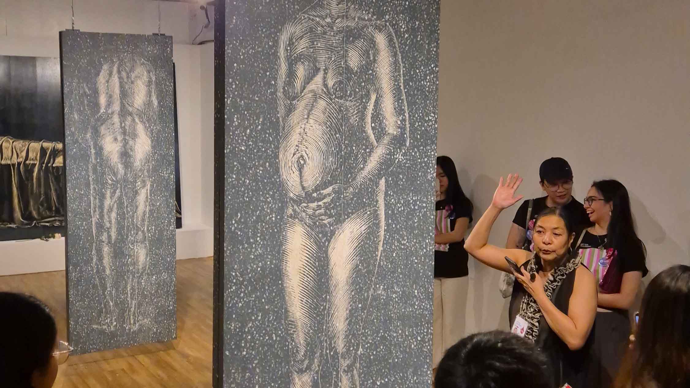 A major highlight is ArtFairPH/Projects, a highly curated collection of installations centered around individual artists’ works. One of these was Ambie Abaño's "...beyond body...", an exploration of human mortality through the lens of a woman at different stages of her life. Abaño herself was on hand to greet visitors, sharing that she had drawn inspiration from her own mother’s experiences to create the larger-than-life panels that made up the installation.