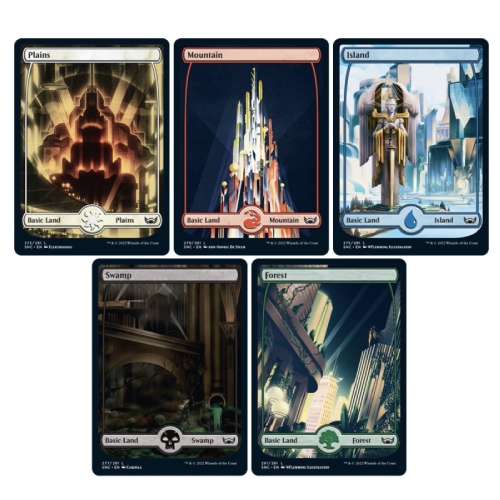 Streets of New Capenna includes 10 full art “Metropolis” basic lands.