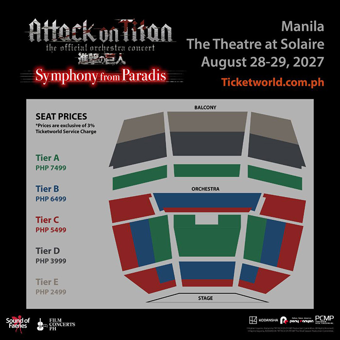 Apart from the Philippines, Attack on Titan: Symphony from Paradis will make its world premiere at the Royal Albert Hall in London on Oct. 17, in Asia in Hong Kong on Nov. 1, and in the US at New York's Carnegie Hall in January 2027.
