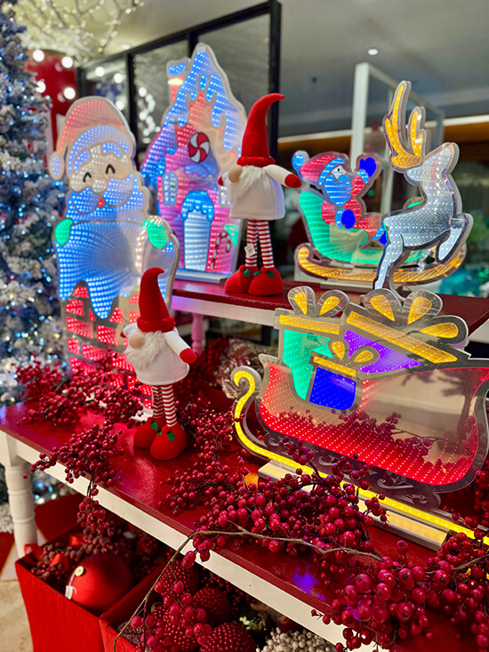 At the grand launch at Rustan’s Makati, we were welcomed by breathtaking décor in hues of red, silver, and gold, with festive details adorning the grand staircase and entryway. Upon arrival, we received a Christmas map highlighting the games, treats, and surprises throughout the store. As we stepped in further, we beheld charming pocket performances from Christmas elf jugglers and toy soldiers on stilts to unicycling Santas, and pantomimes.