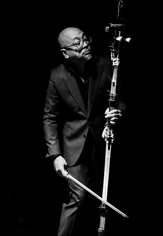 Tad Ermitaño’s primary instrument, named Tungkod ng Ermitanyo (“the hermit’s staff”). Initially inspired by Nana Vasconcelos’s use of the berimbau, Ermitaño began by striking the monochord with a stick but later shifted to a violin bow. He now employs both traditional and extended techniques—spiccato, flying spiccato, sautillé, harmonics, scraping, and more—to produce a wide range of timbres.