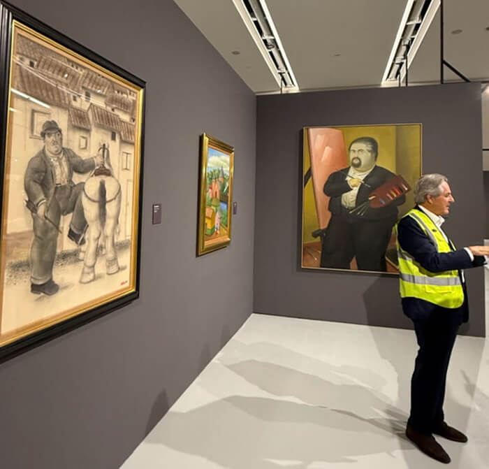 The Botero Foundation hosted a three-day event, and more than 100 collectors and friends flew across the globe to witness this once-in-a-lifetime, awe-inspiring mammoth exhibit—the largest exhibition in the world bringing together 120 works from the 1970s to his final works of the 2020s from the Botero Family collection.