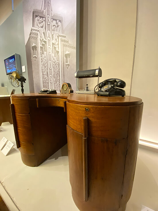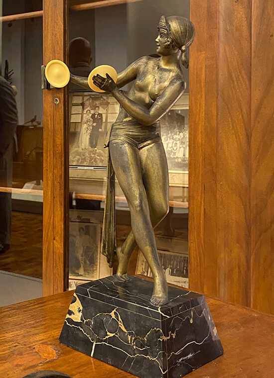 The just-opened exhibit at the National Museum of Fine Arts, unveiled in the “Spoliarium” Hall after opening remarks and a bit of period-era jazz from soprano Pauline Therese Arejola, covers two galleries and ranges from locally made furniture and dressers, ornate armoires and mirrors, to Flapper-style ternos, fountain pens (some supplied by “Penman” Butch Dalisay), busts and statues, and architectural models of key Art Deco-style buildings and structures in Manila, such as the Manila Metropolitan Theater, Rizal Memorial Coliseum, Misamis Oriental Capitol Building, the First United Building in Manila and the Quezon Memorial Shrine.
