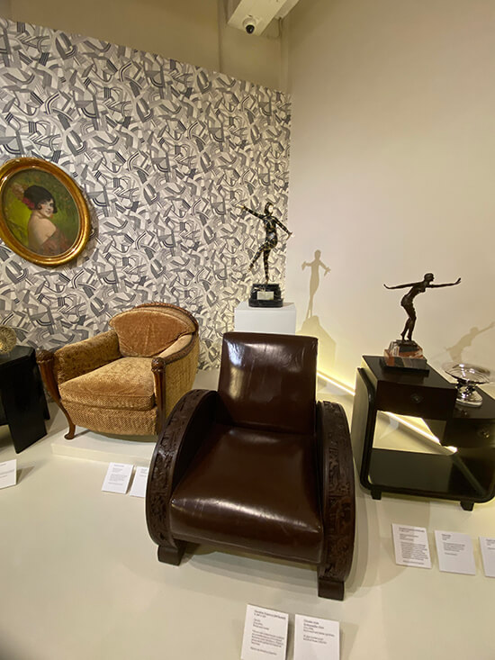 Gallery VII focuses on “The Modern Lifestyle,” with a showcase of proudly Filipino carved furniture items (a set of Gonzalo Puyat & Sons chairs is a highlight), home displays of hairbrushes, vintage postcards, Cymbalist sculptures, and a Chabrol & Poirier porcelain European tea service supplied by Rosales.