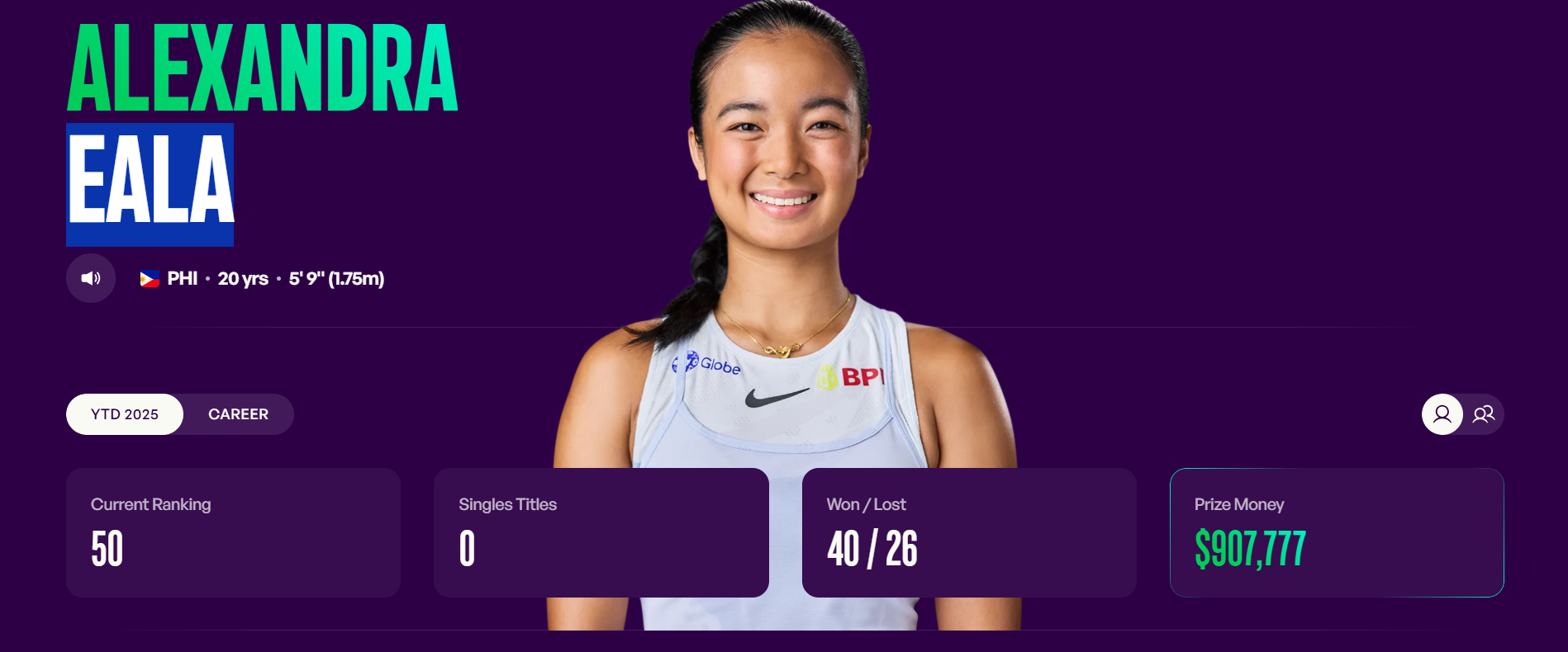 The Filipina tennis ace is ending her 2025 season with a bang as she just rose to World No. 50 in the Women's Tennis Association (WTA) rankings on Monday, Nov. 3.