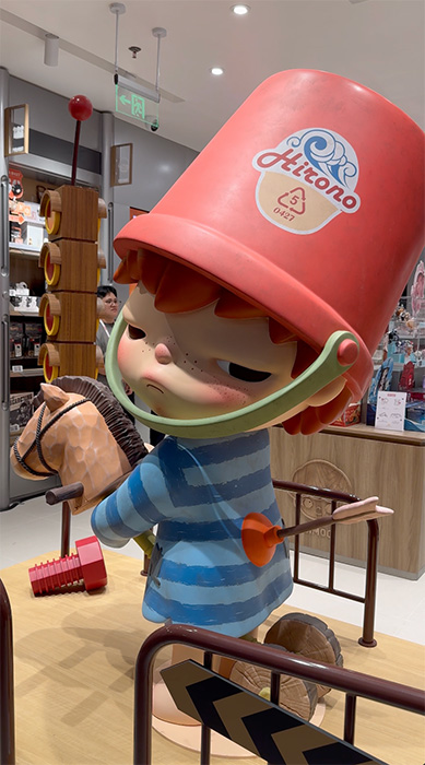 What you'll see first at the entrance of the store is a giant Hirono Echo Series figurine, with its cute frowning face greeting visitors.