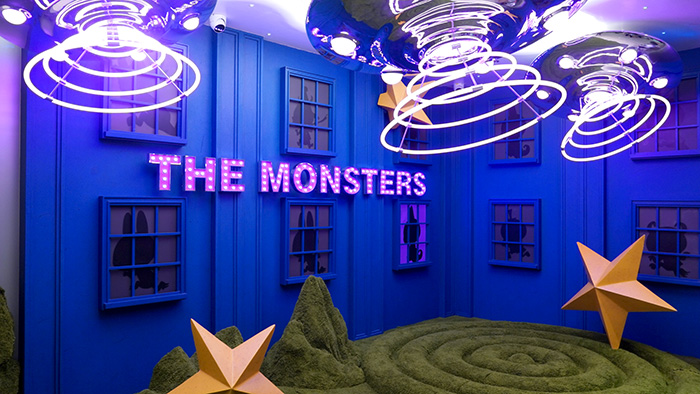 On the other side of the entrance is an art display of the monsters—but only their silhouettes are seen. Can you spot your fave?