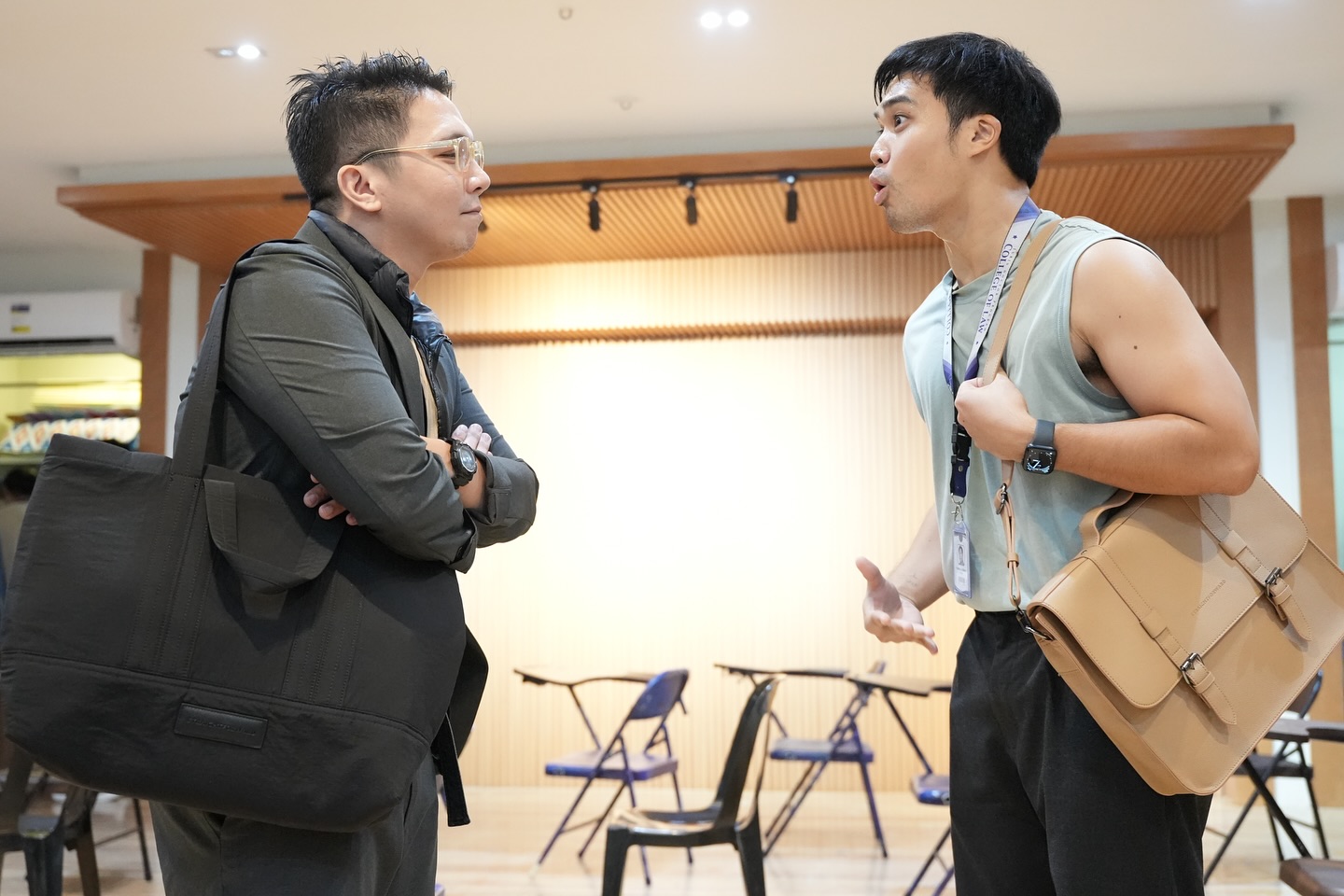 Gio Gahol (left), as Atty. Victor Cruz, and Jerom Canlas, as Torran Garcia, in rehearsals.