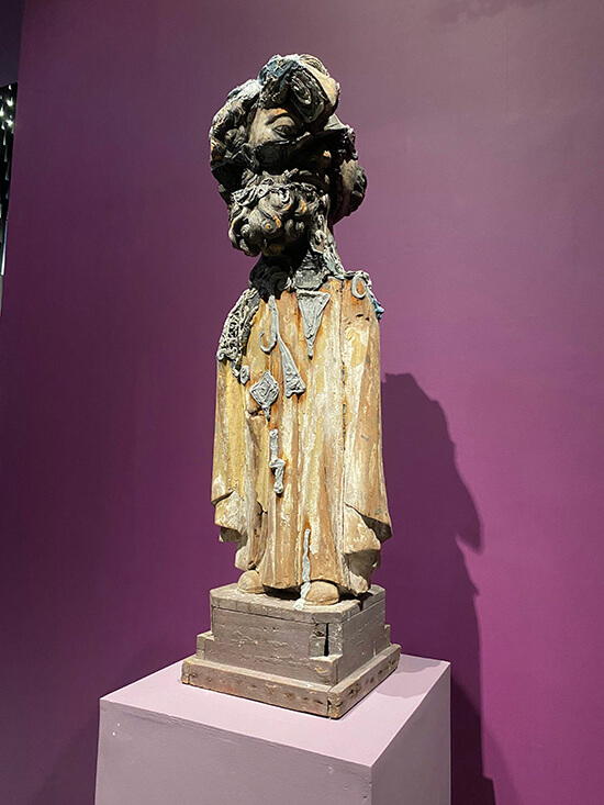 To create this unique world we are surrounded by in the Met, Cruz had to move past punk aggro energy—rejecting the old—into a purer strain of iconoclasm that emerges in expressive gestures of chaos and texture. “Curiously, this lessens the cacophony, allowing us access to a far stranger universe,” Crisologo writes.