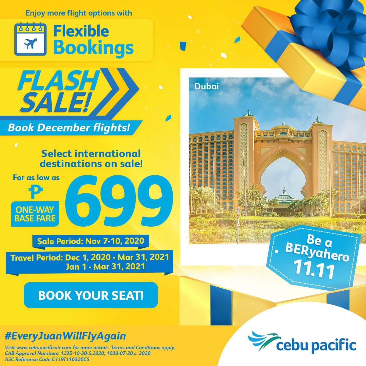 Been itching to hop on a plane? Cebu Pacific is holding a seat sale from November 7-10, 2020, with ticket prices for one-way that's as low as P699 on select international destinations!