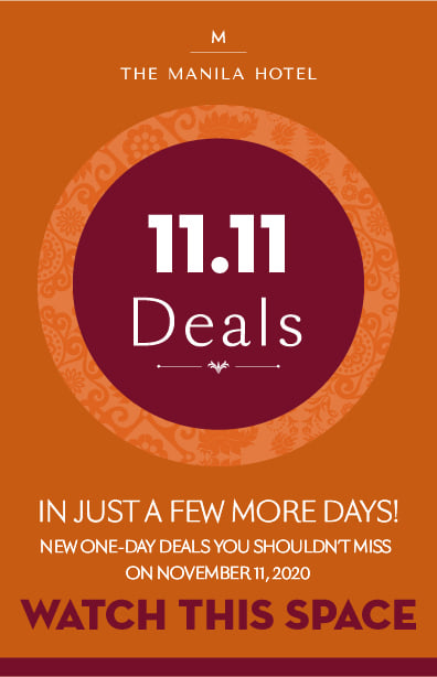 5-star hotel The Manila Hotel is having an 11.11 sale! There aren't much details yet, but according to their Facebook page, they're giving away one-day deals for rooms, dining, and Prestige membership!