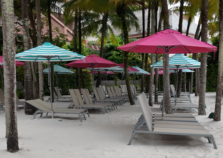 If you're missing the beach, you can feel sand on your skin and relax at the lounge chairs in the man-made seashore.