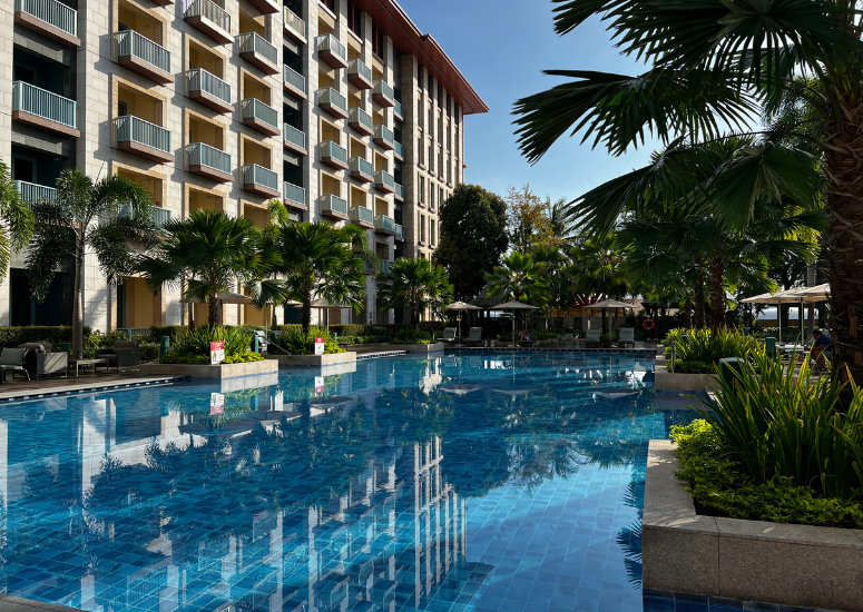 There are seven hotels to choose from in Resorts World Sentosa, one of which is Hotel Ora. This hotel is accessible to several entertainment spots, like the Harry Potter immersive exhibit and casinos. Their Deluxe Pool View room has one king bed, complete with a coffee maker, mini-bar, luggage storage, and a spacious private bathroom.