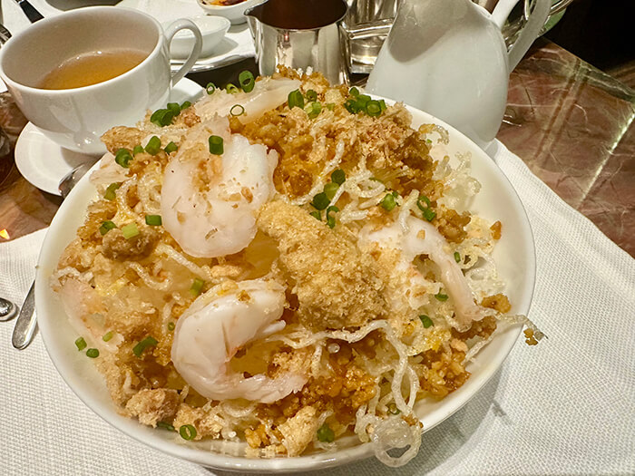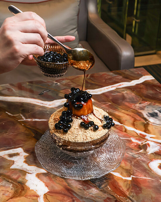 The return of the celebrated pancit palabok on the menu compelled a serving of the noodle dish with shrimp, pork belly, smoked fish, pork crackling, and egg. Another favorite, the Korean dessert bingsu, was given a twist using bubble tea, milk tea shaved ice, sea salt ice cream, roasted soybean powder, and caramel pudding served with brown sugar boba on the side.