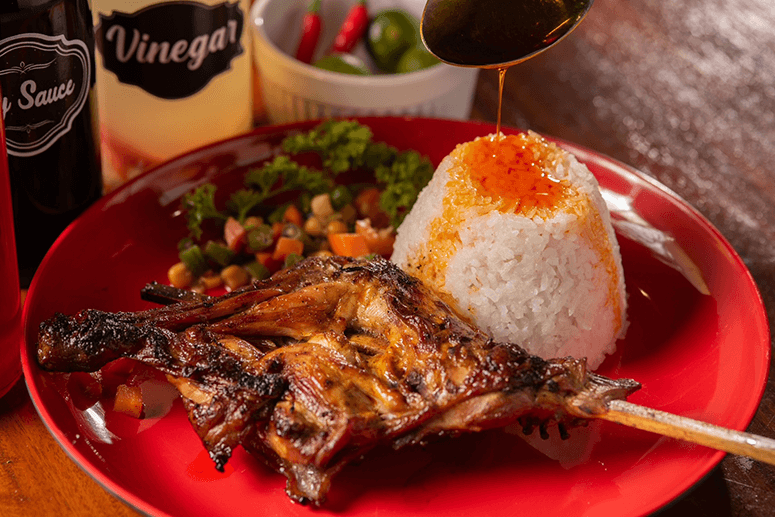 8 Flavors of Bacolod takes pride in its authentic chicken inasal, staying true to the techniques and flavors that made Bacolod’s version a national favorite. Here, the grilled chicken doesn’t carry the sweet notes that many city folks are used to. Instead, it’s marinated in a bold mix of sukang tuba and spices—a blend that infuses the meat with a tangy, aromatic depth even before it hits the grill.