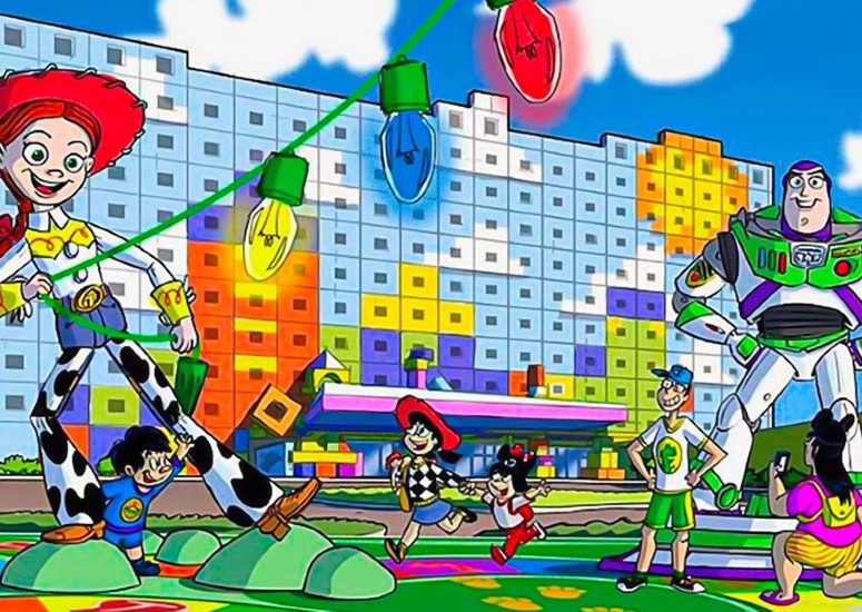 With the official concept art showcasing a vibrant facade complete with giant statues of Jessie and Buzz Lightyear, the hotel is designed to make guests feel like they’ve entered a “world of toys”. Each room will also mirror Andy’s room in the films.