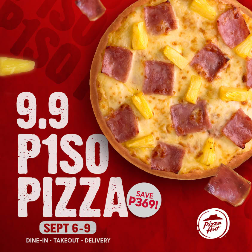 You have until Sept. 9 to score an entire box of pizza for only P1 at Pizza Hut. All you have to do is buy one Large Pan or Stuffed Crust Pizza to get PISO Regular Pizza. The deal is available for dine-in, takeout, and delivery via its official website, through the app, or phone at (02) 8911-11-11.