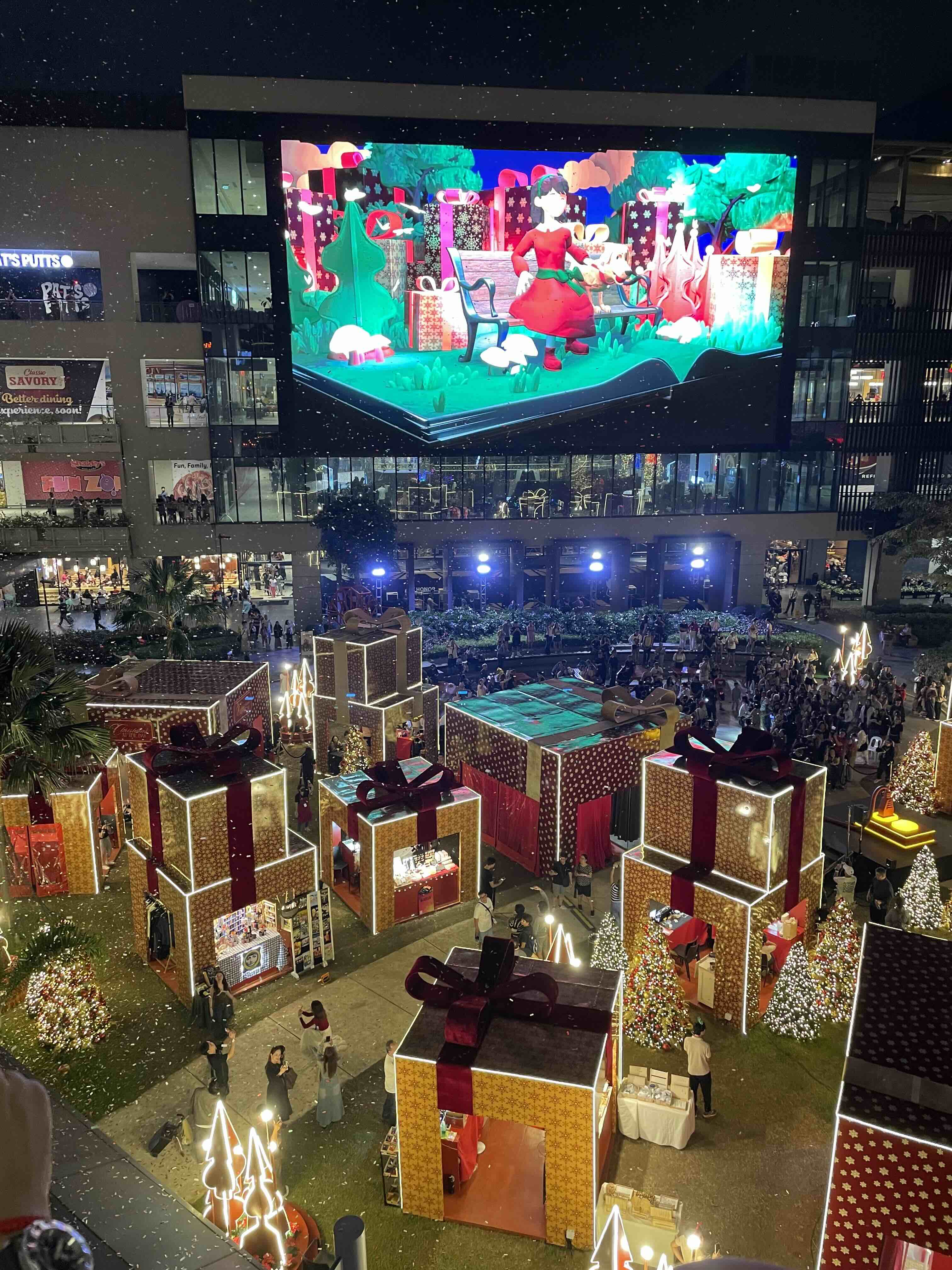 As Birkett and Mae Dichupa, head of marketing for Ayala Malls, plugged in the lights, the entire garden came to life. A 3D LED feature at one end illuminated the space with fun holiday scenes, breathing life into Giftville and Christmas at the Bay. The celebration continued with the signature Garden Ring light show and closed with a glorious fireworks finale.