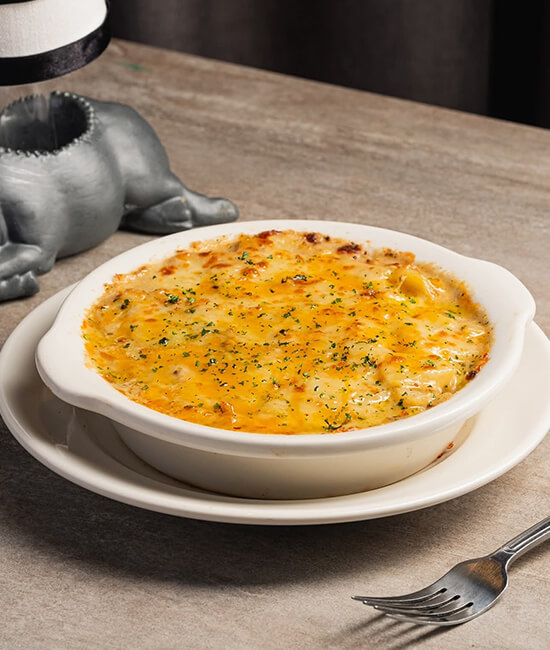 The sides arrived in familiar forms. Smoked Gouda Au Gratin. Truffle Creamed Corn. Food that does not pretend to be clever. Food that knows it will be shared.