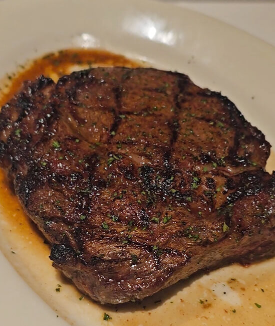 We began with the expected starters, which is another way of saying the right ones. The Jumbo Shrimp Cocktail arrived cold and firm, the shrimp properly cooked, a phrase that should be unnecessary but never is. The Bacon Steak followed, thick and direct. In a world currently obsessed with “faux-pork” foams, this was a slab of confidence. It was bacon that had graduated from the breakfast plate, realizing its true calling as a weapon of mass satisfaction.