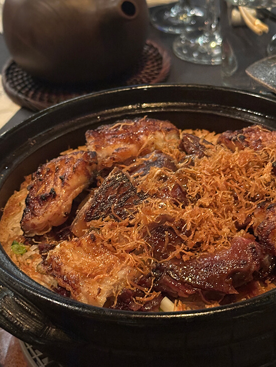 It’s a testament to the food that diners come alone without hesitation, ordering their steamed flowery crab with aged Shaoxing wine or the camphor wood-smoked black foot goose that takes five days to prepare. Each dish, from the thick-cut Chairman-style char siu to the clay pot rice with crispy aged eel, demonstrates what one diner called “technical perfection” while maintaining the soul of Chinese cooking.