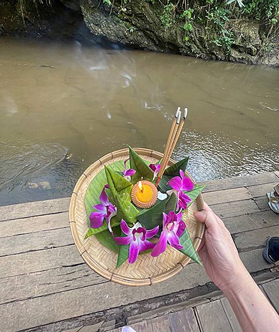 The third time my heart melted was when we visited the Lanna Resort where we were clad in beautiful traditional Thai costumes and jewelry, and learned to make our own krathong (arrangements of banana leaves and orchids) to float down the river. Before we set them assail, we have to apologize to the river for the pollution we have caused it, and make wishes.