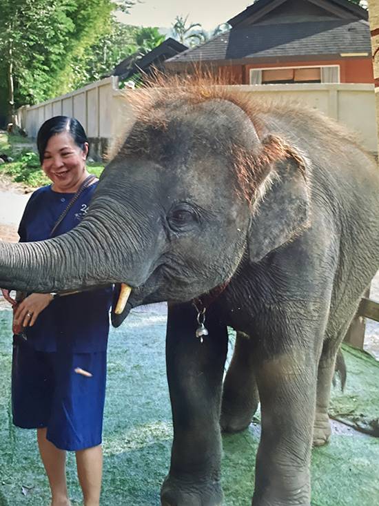 We gladly learn how to hide medicine, to aid their digestion, in tamarind balls, give the command “bonbon!” so they will open their mouths to receive bananas and sugarcane sticks from our hands. We create a soap out of a bark-like material they call sabon, bathe them in the river and laugh when they mischievously splash us with water from their trunks.