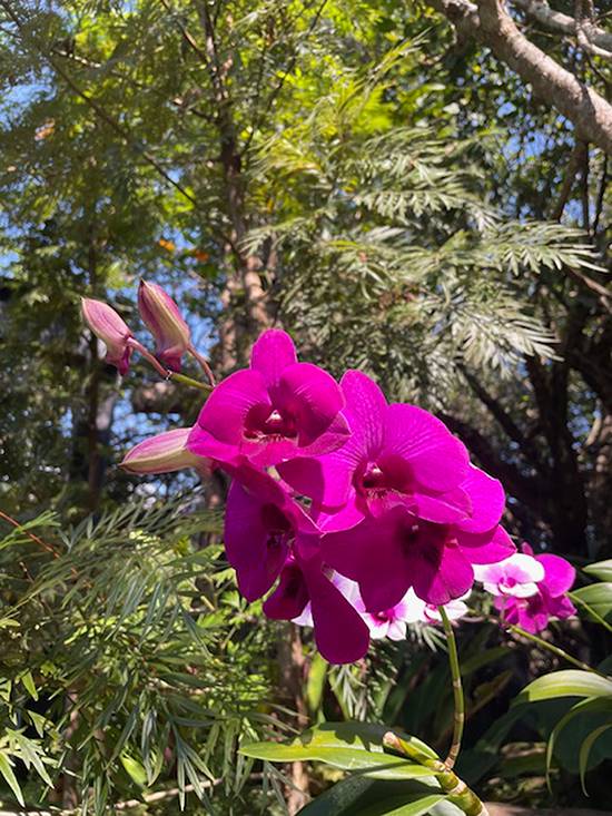 I have a special interest in visiting Shinawatra, an almost century-old institution that weaves and sells pure Thai silk. I leave with 20 meters of silk and other beautiful merchandise after the staff takes me on a brief tour of the weaving process involving yellow Thai cocoons. They burn a swatch so I can tell pure Thai silk from adulterated versions. There are many other purveyors of silk in Chiang Mai, but as with our pina, the genuine item is not inexpensive.
