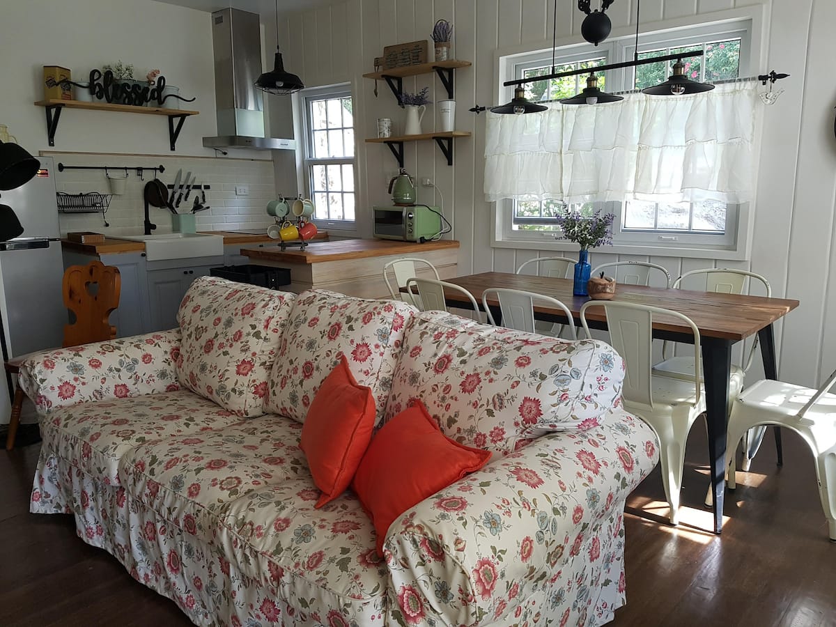 This country chic design definitely makes you feel at home. From its eye-catching baby blue and white interiors down to the cozy furniture, you won’t mind staying indoors for the rest of your stay.