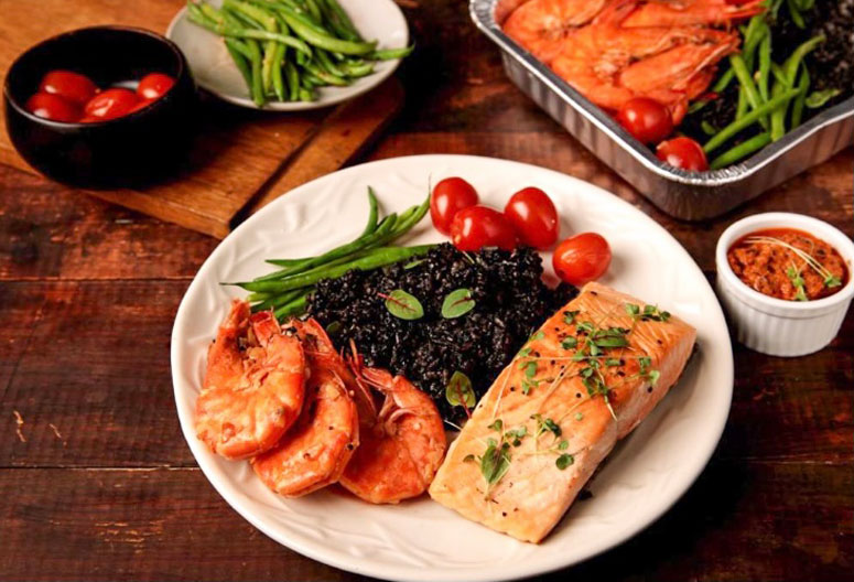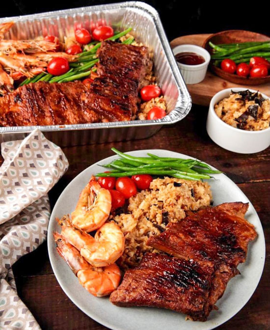 Slow Burn Mnl offers three kinds of party trays: Turf & Surf, fall-off-the-bone smokin’ barbecue ribs, easy-to-peel butter garlic shrimps, French beans, cherry tomatoes, and truffle umami rice (full tray (P1,499), half tray (P899); Surf & Surf, is ideal for pescatarians as it consists of seared fresh salmon served with Slow Burn secret sauce and squid ink rice (full tray (P1,599), half tray (P999); and The Mix, a combination of the Turf & Surf and Surf & Surf so customers can have all the elements of both platters/trays in one (full tray (P2,200).