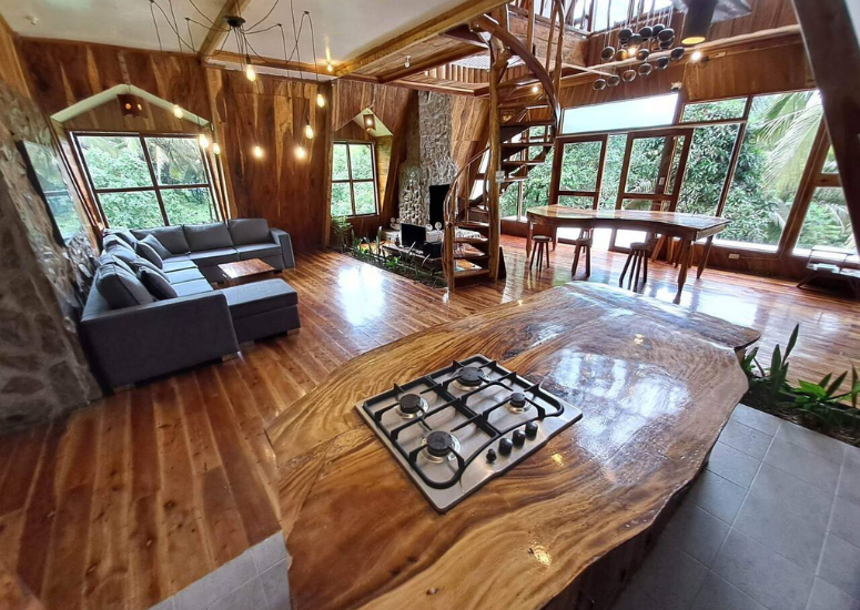 The house is primarily built of mahogany wood with big windows for more natural light. It also features contemporary kitchen and living areas, and spacious bedrooms for maximum comfort. Note, though, that since it's located on the hilly side, cable and data connections may be spotty.