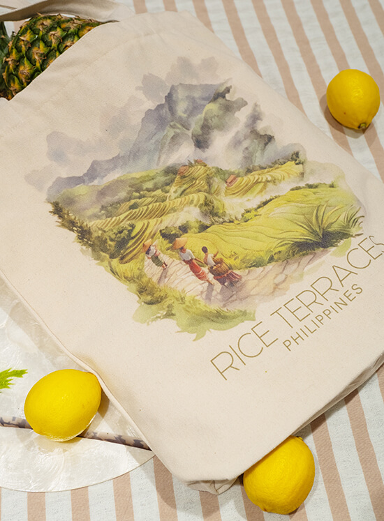 Carrying heritage with you is also a mindful way to honor both craft and the environment. The Canvas Tote with Rice Terraces Watercolor Print brings this spirit to life—not just through its sustainable canvas material, but through the story it carries. The watercolor-style artwork of the iconic Rice Terraces adds a meaningful touch of culture to your travels, a reminder of the landscapes that we’re called to protect.