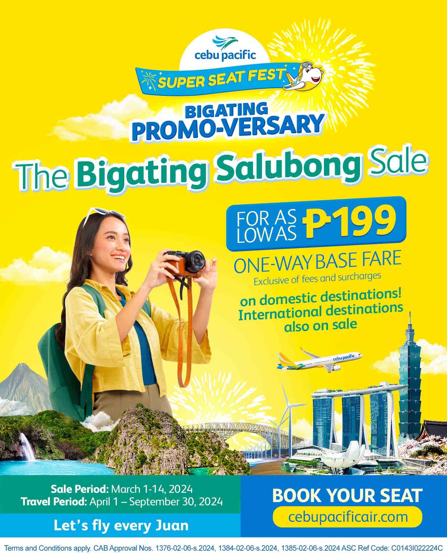 On March 1, the local low-cost airline announced "The Bigating Salubong Sale" which offers domestic and international flights as low as P199 for one-way base fares.