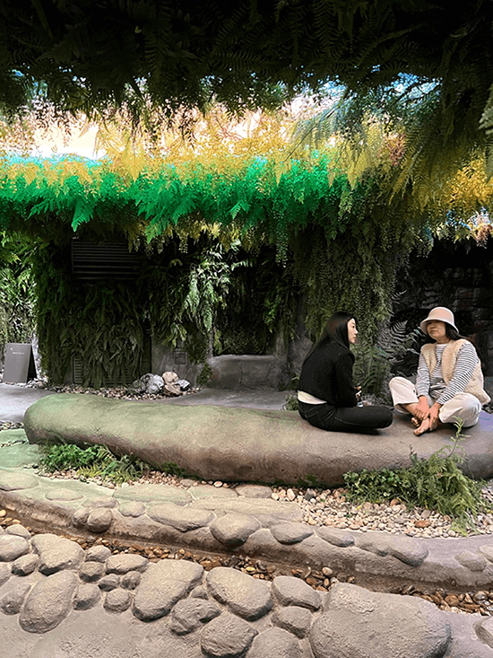 In the middle of bustling Seongsu is this immersive gallery that reconnects you to nature. It offers a few moments to step back and journey into the quiet of the natural world. And when I say “step,” you are made to remove your shoes so you can feel the different textures of sand, grass, clay, stones. I went through a maze of rich foliage and emerged into this sanctuary with birds chirping.