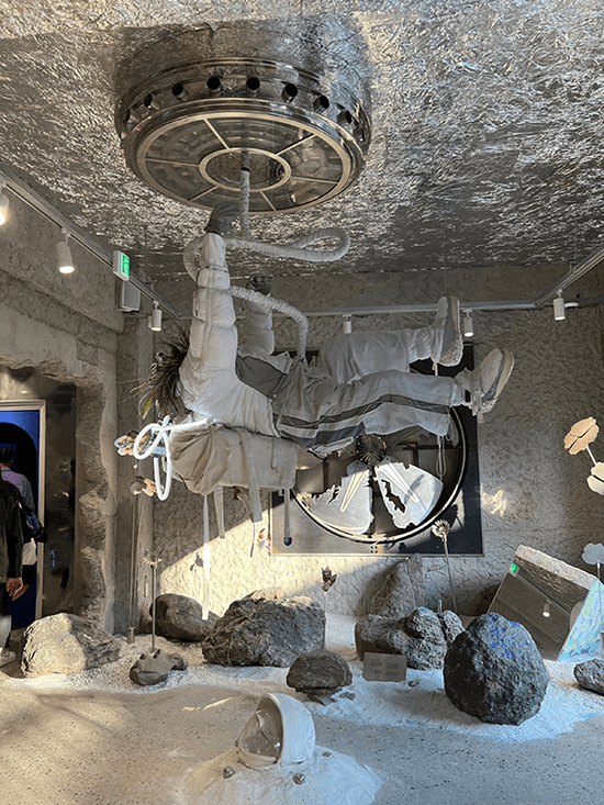 Sometimes I forget that Ader Error is a clothing store because when you step into their boutique, you enter another world. That world is of unexpected creativity. Like its Sinsa store in Gangnam, Ader Error in Seongsu has interesting installations such as a giant crater at its entrance, an astronaut hung upside down, a fountain made of a submarine-looking vehicle, and more. Their merchandise displays are also fascinating, like holograms of sneakers and swaying shoe racks. You have to go there to understand what I mean. Creative cool is an understatement for Ader Error.
