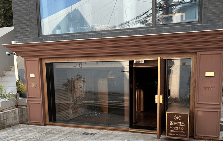 Yagwa has made a big comeback in Korea. Yagwa is a flower-shaped cookie that used to be given by the lolas to their grandchildren back in the day. Now you see yagwa everywhere—topping desserts, drinks, ice cream, and boxes of it being sold in cafes and stands. Golden Piece is an elegant store right in the heart of Hannam, selling premium and modernized yagwa. The tastefully designed store is mostly in dark wood, with subtle brass signage, and minimal décor and lighting. Their yagwa comes in beautiful tins in wonderful flavors, reinterpreted but still retro.