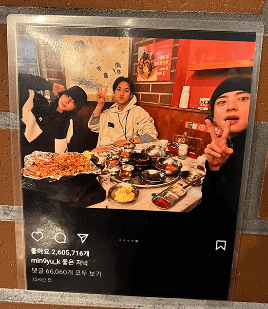 If you are a samgyupsal and K-pop fan, this is the place for you. Located in Cheongdam at the Gangnam area, this unpretentious and traditional Korean restaurant serves really good food. This is probably why many celebrities have eaten there. At the entrance, there are autographed photos of stars. Even members of phenomenal group Exo have been there. Recently, Jungkook of BTS, Mingyu of Seventeen and Cha Eun Woo of Astro dined there and it was all over social media. You can even sit at the exact table they ate in. You won’t miss it, there’s a photo of them by the wall. We ordered what they ordered, which was Jeju black pork belly, soft tofu made with ground beans and spicy stew made with pork and friend rice. Yummy!