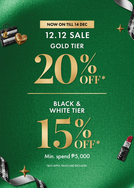 Now is the best time to shop for your beauty needs and faves at Sephora. This 12.12. Gold-tier members can enjoy 20% off, while Black & White Tier Members can get 15% off with a minimum spend of P5,000.
