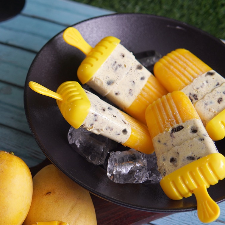 - Pour the mango layer into the molds until 1/3 level, then place in the freezer and freeze for one hour.