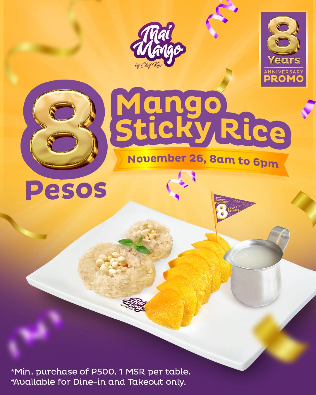 The food brand launched the offer in celebration of its 8th anniversary. Aside from Mango Sticky Rice, it has also been loved for its Thai Mango Classic and Pad Thai for eight years now.
