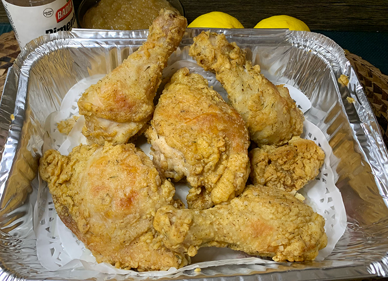 When ready to cook, heat the corn oil to high in a frying pan or deep skillet. Coat the chicken again with the flour mixture, shaking off the excess flour. Test the cooking oil: Stick one end of a chopstick into the oil. If the oil sizzles, then it’s hot enough. Reduce the heat to medium (so the chicken does not brown too fast). Fry the chicken in the hot oil, a few pieces at a time (do not overcrowd the pan), about six to 10 minutes per side, or until golden brown, crisp and cooked through. Drain on paper towels.