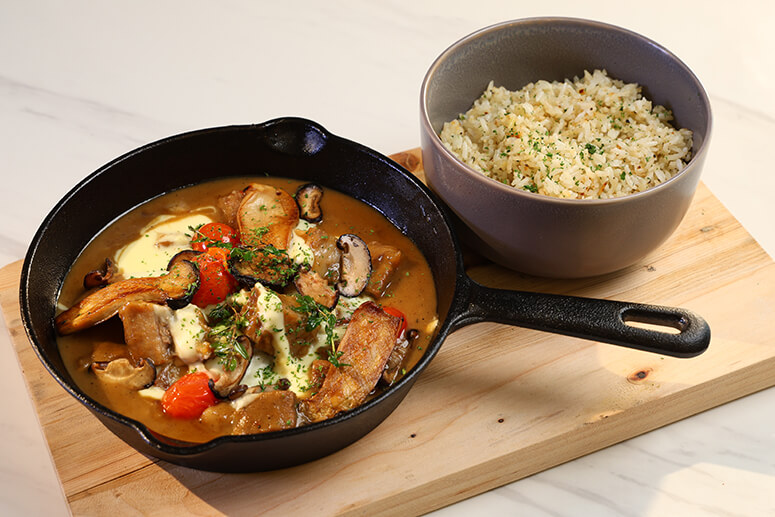 For something heartier, the Skillet Bourguignon arrives with presence. Slow-cooked beef belly, braised until fork-tender in the classic French style, is served sizzling on a cast-iron skillet, blanketed with a luscious cheesy fondue sauce and topped with roasted vegetables. It’s rustic yet indulgent.